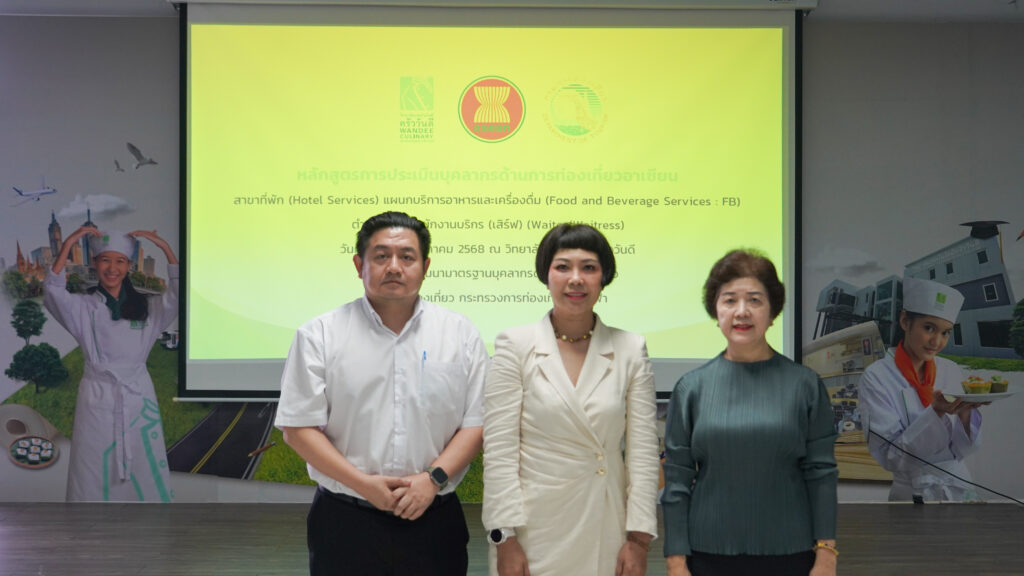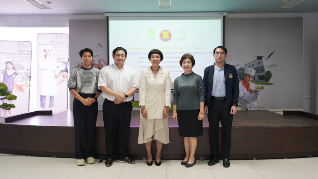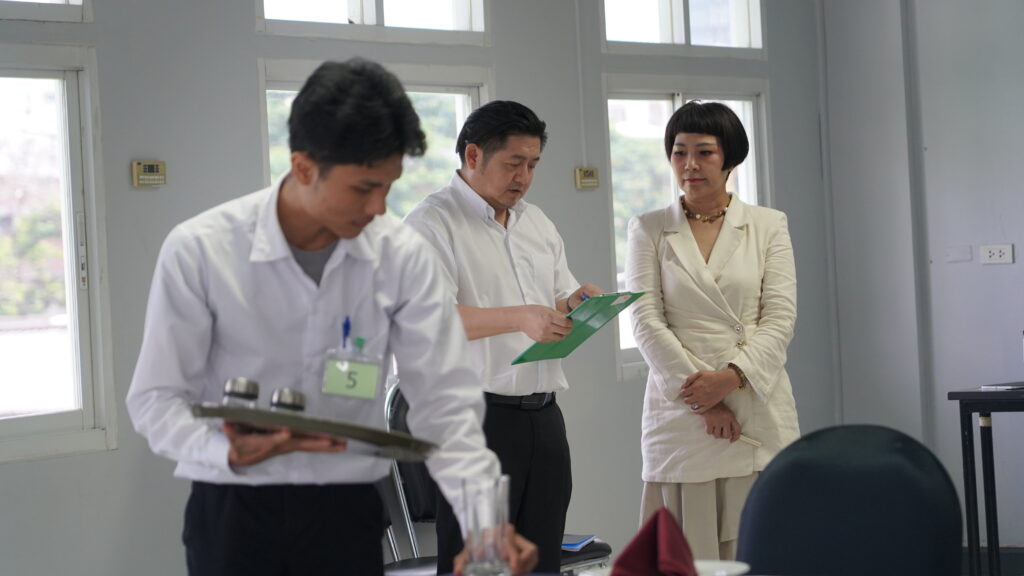 ประมวลภาพกิจกรรมหลักสูตรการประเมินบุคลากรด้านการท่องเที่ยวอาเซียน สาขาที่พัก (Hotel Services) แผนกบริการอาหารและเครื่องดื่ม (Food and Beverage Services : FB) ตำแหน่งงานพนักงานบริกร (เสิร์ฟ) (Waiter/Waitress) วันที่ 8 – 9 พฤษภาคม 2568